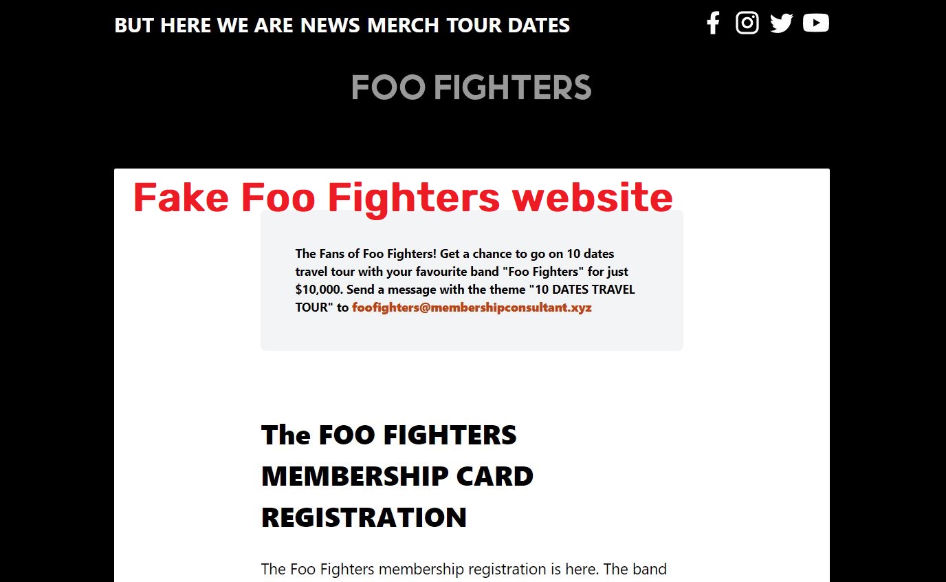 This makes it quite obvious that the Foo Fighters Tour Membership is a scam and that fans should not pay anyone claiming to represent the band money for private meet-and-greets, crypto investment deals, charity donations or prize giveaways. If someone approaches you online, either claiming to be from Foo Fighters or other prominent bands, you can be sure that it is a scam.